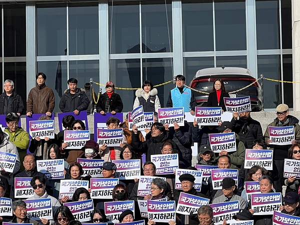 ÇÑÆí À̳¯ °°Àº ½Ã°£ ³»¶õû»ê»çȸ´ë°³Çõ °æ³²Çൿ, °ø¾Èź¾ÐÀúÁö ±¹°¡º¸¾È¹ý ÆóÁö °æ³²´ëÃ¥À§µµ °æ³²µµÃ» ¾Õ¿¡¼ Áýȸ¸¦ ¿¾ú´Ù. ¿À¸¶ÀÌ´º½º¿¡ µû¸£¸é À̺´ÇÏ °æ³²´ëÃ¥À§ °øµ¿´ëÇ¥´Â "½Ä¹ÎÁöÀÇ »ê¹° ±¹°¡º¸¾È¹ýÀÌ ±Ç·Â À¯Áö¿Í Á¤Àû Á¦°Å¿¡ ÀÌ¿ëÇÑ ³ª»Û ¾Ç¹ýÀÓÀº ÀÎÇõ´ç »ç°Ç Á¶ÀÛ, ±è´ëÁß »çÇü¼±°í, ÅëÇÕÁøº¸´ç ÇØ»ê, ÃÖ±Ù ¿ì¸® Áö¿ª °£Ã¸´Ü Á¶ÀÛ »ç°Ç µî¿¡¼ º¸¾Ò´Ù. ¹Ýµå½Ã ¾Ç¹ýÀ» ÆóÁöÇØ ÀαÇ, ¹ÎÁ·, ¹ÎÁÖ¿Í Áøº¸¸¦ ÀÚÀ¯·Ó°Ô À̾߱âÇÏ´Â ½Ã´ë ´õ ÀÌ»ó ¾ï¿ïÇÑ »ç¶÷ÀÌ ¾ø´Â ¼±Áø Á¶±¹, ´ëÇѹα¹À» ¸¸µé¾î¾ß ÇÑ´Ù"°í °Á¶Çß´Ù.