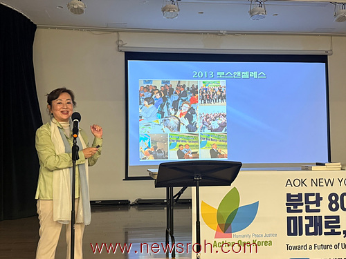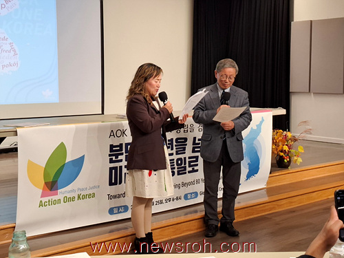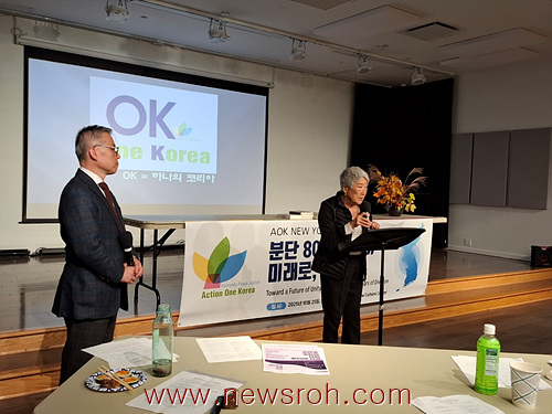 AOK´º¿åÀº ÇØ¿Üµ¿Æ÷¿Í ±¹³» µ¿Æ÷°¡ ÇÑ ¸¶À½À¸·Î ºÐ´Ü(ÝÂÓ¨)À» ±Øº¹ÇÏ°í »õ·Î¿î ½Ã´ë¸¦ ¿¾î°¡°Ú´Ù´Â ÀÇÁö·Î ÅëÀÏÀÇ ±æÀ» °³Ã´ÇØ ³ª°¥ °ÍÀ» ¼±¾ðÇß´Ù. À̳¯ ⸳½Ä¿¡´Â Çѱ¹¿¡¼ Á¤¿¬Áø AOK »óÀÓ´ëÇ¥¿Í ¾È±¤È¹ û³â¿îµ¿°¡°¡ ÇÔ²² ÃÖ¾Ö¿µ ¿ì¸ÕÅ©·Î½ºDMZÀü ÀÌ»çÀå, ¹®À¯¼º ¹Î±Ç¼¾ÅÍ È¸Àå, ¹ÎÁ·¹®Á¦¿¬±¸¼Ò ´º¿åÁöºÎ ÀÌÃá¹ü ÀÌ»çÀå, Á¤±¤Ã¤ Èï»ç´Ü ´º¿åÁöºÎÀå, ¹Úµ¿±Ô º¯È£»ç µî ´º¿å ´ºÀúÁö ÀÏ¿øÀÇ ¿ÀÇǴϾ𠸮´õ 40¿©¸íÀÌ ÇÔ²² Çß´Ù.
